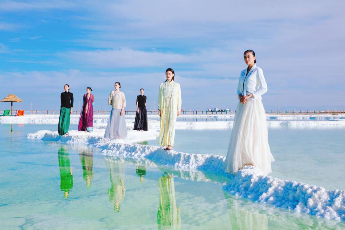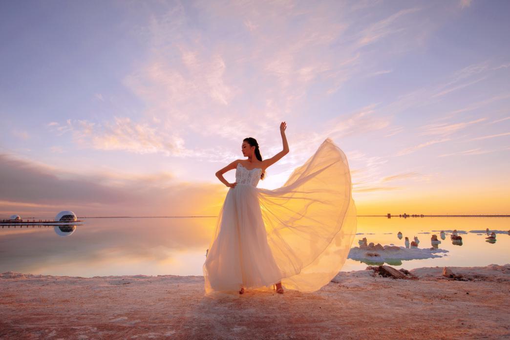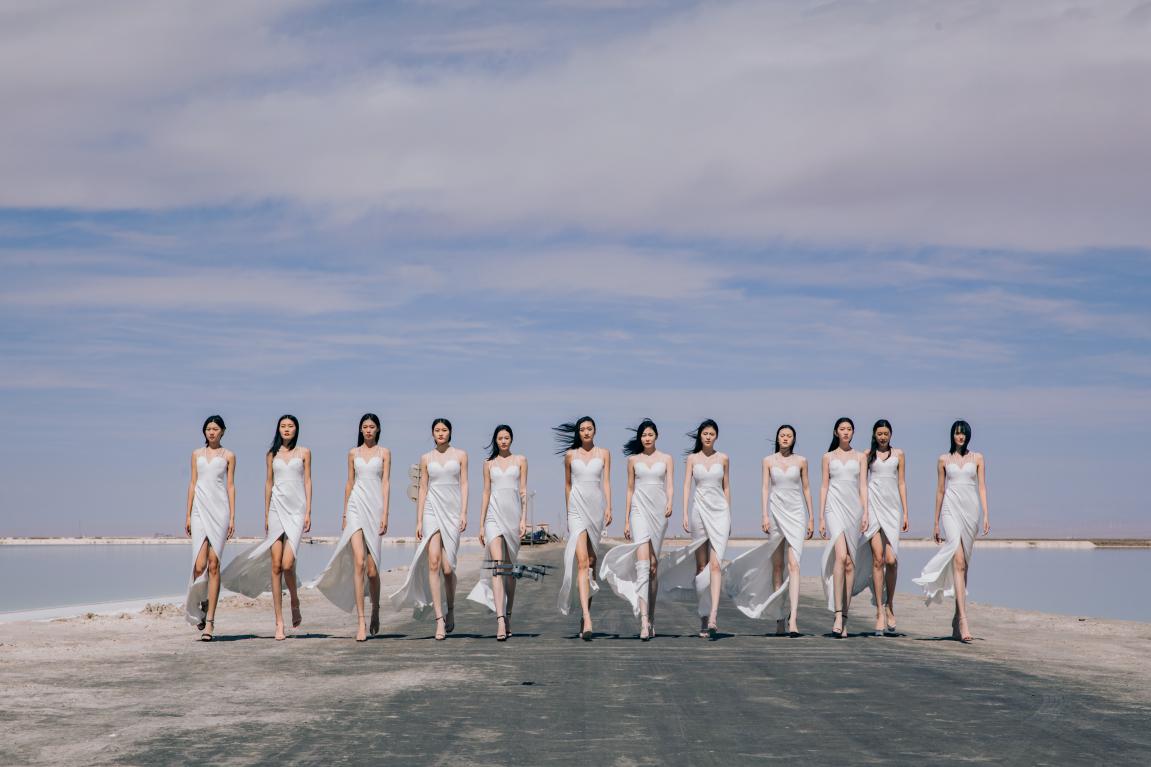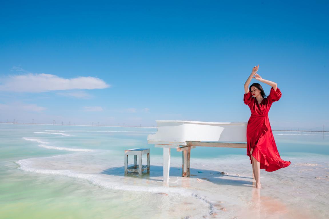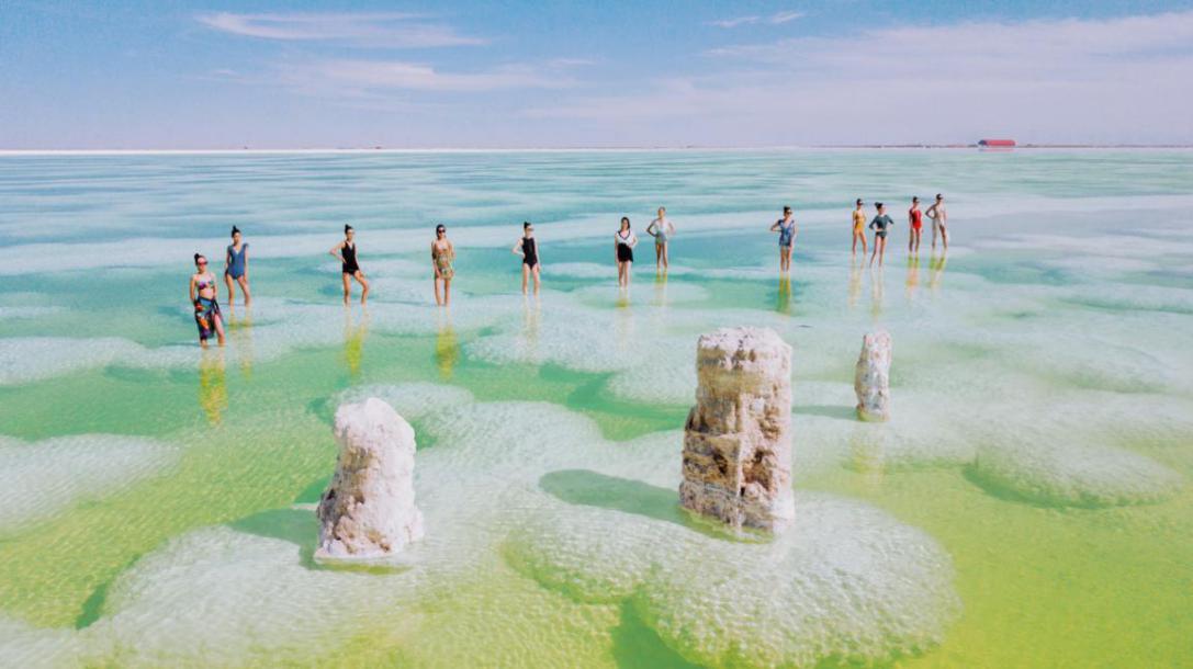随着十几位美女佳人在白、绿相间的察尔汗盐湖中集体走秀,可以说,让这个世界第二大、亚洲最大的盐湖的旅游业被彻底激活了!她们时而身着中国传统服饰,时而身披红、白婚纱,在中西合璧中,让古老的盐湖水焕发出勃勃生机。