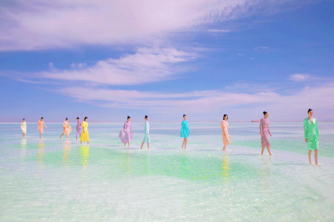世界盐湖城·青海格尔木。9月的青海,自然风光格外壮美! 16日至18日,身穿五颜六色的十几位婀娜多姿佳人,一齐点亮了"察尔汗梦幻盐湖",让金秋的"察尔汗"分外妩媚。